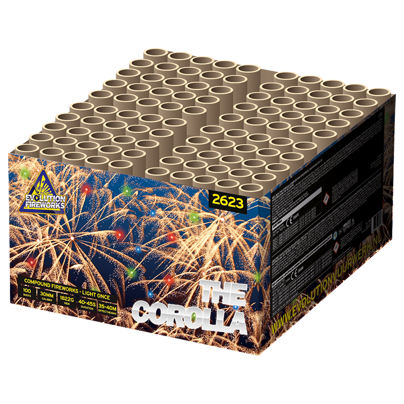 The Corolla 100 shots 30mm Goedkoop vuurwerk kopen bij Vuurwerkwinkel Badbentheim